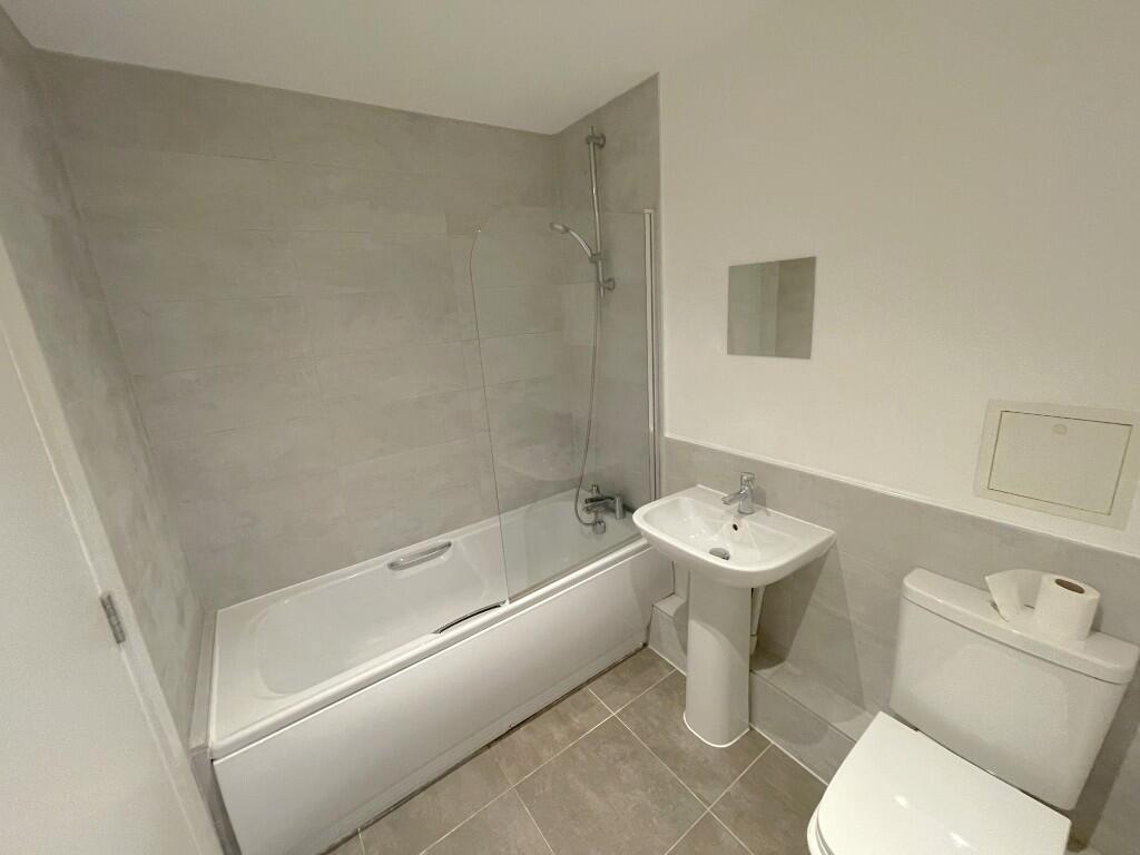 The generous double bedroom is newly carpeted and well sized, while the bathroom is finished in a clean, modern style with tiled flooring. Further benefits include inset LED ceiling spotlights, electric panel heating, fixed-pane double glazing and a mechanical Vent-Axia ventilation system throughout.